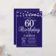 60e anniversaire Invitation avec lumières à cordes. Arrière - plan bleu marine. 13ème 15ème 16ème 18ème 20ème 21ème 30ème 40ème 50ème 60ème 70ème 80ème 90ème 100ème, Tout âge. Pour plus de personnalisation, cliquez sur le bouton "Customiser" et utilisez notre outil de conception pour modifier ce modèle.