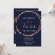 C'est une invitation à la fête du 60e anniversaire moderne, chic et élégante. Ce design élégant est en or rose chic et bleu marine. Il a le texte, "Samantha's 60 and Fabulous" et la date de célébration à la fois sur le devant et le dos. Ce motif simple, moderne et typographique est encadré par un élégant cercle d'effet or rose. Le recto contient également du texte pour le parti et des détails du RSVP. Ce design élégant est parfait pour un 60ème anniversaire chic et inoubliable fête. Pour personnaliser, il vous suffit d'ajouter votre nom, votre date, le lieu de la fête et les informations RSVP dans la zone de texte personnalisée. Pour modifier la couleur ou la police, consultez l'outil d'édition de conception. Si vous avez besoin d'aide pour la personnalisation, ou pour un design personnalisé, contactez-moi via zazzle conversation ou email : ursuladawnmoon@gmail.com