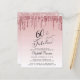 Élégante, chic et économique invitation à la fête du 60e anniversaire avec "60 & Fabulous" écrit en script élégant contre un arrière - plan rose sombre, avec une fausse parties scintillant en or rose et rose qui coule du haut.