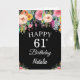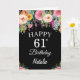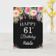 61e Anniversaire Floral Flowers Carte noire avec nom et âge personnalisés. Pour plus de personnalisation, cliquez sur le bouton "Customiser" et utilisez notre outil de conception pour modifier ce modèle.
