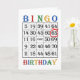 Carte 65e anniversaire. Dites Joyeux anniversaire à un joueur de bingo avec une carte de bingo. L'âge est entouré de rouge. Un joueur fou de bingo va obtenir un énorme coup de pied de cette carte! Copyright Norma Cornes.