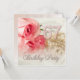 Une belle image délicate d'un rose dans les tons roses doux. Dans l'arrière - plan est une série de perles. L'ensemble est adouci par une plume délicate. Une délicieuse invitation à la fête du 67e anniversaire. Remplacer par les détails de votre propre fête