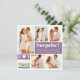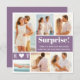 Tout le monde adorera voir vos photos fiançailles. Ce faire-part de collage de 6 photos vous donne une excellente occasion de les montrer. Les deux carrés bleus poussiéreux contiennent votre texte. Tout le texte blanc peut être modifié pour créer votre spin unique. J'ai ajouté une Surprise ludique ! Puis deux lignes de texte dans le grand carré dans le plus petit, j'ai inséré vos monogrammes séparés par un coeur.
