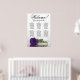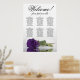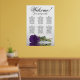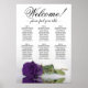 Ce bel organigramme mariage compte six tables, chacune pouvant accueillir 10 convives, pour un total de 60 convives. Le graphique présente un design romantique, montrant un seul rose royal violet à longue tige reposant délicatement sur son côté et réfléchissant dans un bassin d'eau serein. Le titre du graphique, rendu en élégante calligraphie script, chaleureusement invitations invités avec "Bienvenue! Veuillez trouver votre table", tout en laissant suffisamment d'espace en bas pour les noms du couple et la date du mariage. Ce tableau de sièges est une façon merveilleuse et pratique d'accueillir vos invités et de les aider à trouver leurs sièges désignés à la réception, dégageant un air de charme et de sophistication.