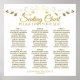 Carte de sièges mariage de 6 tables conçue pour aider vos invités à trouver la table appropriée à votre réception. Le design sobre et élégant est orné d'imprimés dorés sur un arrière - plan blanc. Écriture chic avec une bordure florale en filigrane.