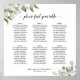 Ce tableau de 6 places comprend des assignations de table pour 60 personnes avec 10 places par table. Le design rustique de la campagne présente des ressorts d'aquarelle peints à la main de feuilles d'eucalyptus et du feuillage dans les tons de mousse de menthe et de vert sauge. Le titre élégant de calligraphie de script dit : S'il vous plaît trouver votre table, et les noms du couple et la date mariage apparaissent en bas.