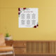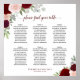 Cet élégant tableau de sièges mariage de 6 tables présente une belle aquarelle peinte à la main avec des roses, des fleurs et de la verdure dans les tons rouge pourpre, bordeaux et rose roux. Il peut accueillir 60 convives avec 10 couverts à chaque table. Le design boho chic rustique comprend un titre de calligraphie en dentelle, avec espace pour les noms du couple et la date mariage ci-dessous. Merveilleuse façon d'ajouter élégance et style à votre réception de mariage.