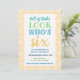 Beau bleu vert jaune bleu, tons pastel, couleurs agréables et gratuites. Excellent design pour l'invitation à l'anniversaire et formulation astucieuse de 6e anniversaire.