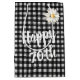 Marguerite blanche sur motif en vichy noir et blanc pour 70ème anniversaire. Le texte est modifiable.