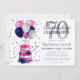 Cette fabuleuse invitation de 70e anniversaire avec un gâteau rose et argent à 2 couches avec des roses bleus et rose, bleu marine et argent ballons, le numéro 70 en argent et bleu brillant confetti serait parfait pour célébrer votre aimé à l'âge de 70 ans. Traditionnel et classique, il est frais, moderne et contemporain. Le dos est une feuille rose de coordination.