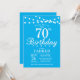 Invitation du 70e anniversaire avec lumières à cordes. Arrière - plan bleu. Hommes ou Femmes Anniversaire. 13ème 15ème 16ème 18ème 20ème 21ème 30ème 40ème 50ème 60ème 70ème 80ème 90ème 100ème, Tout âge. Pour plus de personnalisation, cliquez sur le bouton "Customiser" et utilisez notre outil de conception pour modifier ce modèle.