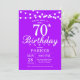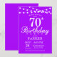Invitation du 70e anniversaire avec lumières à cordes. Arrière - plan Lavender Violet Lilac. Femme Lady Élégante anniversaire moderne. 13ème 15ème 16ème 18ème 20ème 21ème 30ème 40ème 50ème 60ème 70ème 80ème 90ème 100ème, Tout âge. Pour plus de personnalisation, cliquez sur le bouton "Customiser" et utilisez notre outil de conception pour modifier ce modèle.