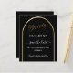 Une carte Save the Date pour une fête de 70e anniversaire. Un arrière - plan noir, décoré d'un faux arc doré. Personnalisez et ajoutez une date et votre nom. Le texte : Soixante-dix et Enregistrer la Date est écrit avec un grand script de style à la main tendance. 1 feuille = 1 enregistrer la date d'impression du bord au bord.