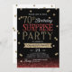 Cette invitation chic et élégante du 70e anniversaire du Surprise Party présente un élégant faux thème de l'or et de la parties scintillant rouge confetti avec une typographie moderne.