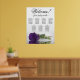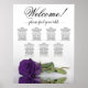 Le tableau des places mariages comprend sept tables et présente une esthétique romantique et étonnante. Un rose royal violet à longue tige se repose horizontalement, projetant un reflet dans un bassin d'eau. Le titre du graphique est écrit avec élégance dans la calligraphie script, en lisant "Bienvenue! Veuillez trouver votre table." La partie inférieure donne de la place pour les noms du couple et la date du mariage. Avec dix places par table, ce tableau peut accueillir 70 convives et sert d'outil pratique et agréable pour guider les clients vers leur siège à la réception.