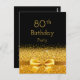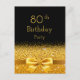 Elégante, classique, glamour et de style féminin invitation à la fête. Un faux ruban doré et arc avec parties scintillant dorée et scintillant, un peu de bling et de luxe pour un anniversaire. Arrière - plan noir. Avec le texte : 80th Birthday! sur le devant Ajoutez les détails de votre événement sur le dos.