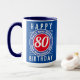 80th Birthday Gift Mug. Couleurs vives et design audacieux. Tasse d'anniversaire numérotée. Le design se répète de part et d'autre. 80 ans. Célébrez le 80e anniversaire d’un être cher avec cette tasse personnalisable, avec son âge, son nom et sa date de naissance. Ce gardien personnalisé est un cadeau réfléchi et unique pour commémorer cette étape importante.