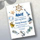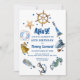 Les invitations d'anniversaire à thème nautique sont un thème chaud pour l'été 2024. Ce design fantaisiste est parfait pour un 80ème anniversaire. Il comprend des articles de voile tels que une roue de navire, la cloche de navire et l'ancre. Des objets d'inspiration océanique comme une étoile de mer et un cheval de mer. Et où se trouveraient les marins sans phare ni romantisme d'un message dans une bouteille. La typographie moderne donne vie à votre invitation. Tout le texte est modifiable et facile à customiser.