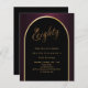 Une élégante invitation au 80e anniversaire. Un arrière - plan noir et bordeaux avec une arche dorée à l'avant. 1 feuille = 1 invite imprimé bord à bord.