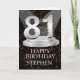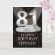 Créez une carte de 81e anniversaire spéciale en ajoutant un nom. Le numéro 81 sur une plinthe avec des projecteurs brillants pour l'éclairer!