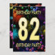 Ajoutez un nom pour customiser cette invitation unique. 82e anniversaire invitation de fête avec feux d'artifice et bulles. Ajoutez vos détails à l'intérieur pour créer un invitation amusant parfait. Allumez le ciel avec ces feux d'artifice glorieux. Une invitation à une fête d'anniversaire qui a du style et beaucoup de plaisir.