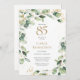 Cet exquis eucalyptus aquarelle avec des embellissements en feuille d'or et des points plaqués or 85ème anniversaire invitation avec demande de carte est parfait pour célébrer votre femme, maman, soeur, tante, ami, grand-mère. Son design fleuri et doux est moderne mais traditionnel. Le dos a une demande magnifiquement formulée pour une carte et une coordination de l'eucalyptus. Sélectionnez Personnaliser ce modèle pour en faire le vôtre. En quelques secondes vous verrez vos incroyables invitations à la fête du 85e anniversaire.