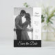 Enregistrer la carte de date - Il est temps de commencer à penser à votre date de mariage! Enregistrez les cartes de dates sont une façon amusante de faire savoir à vos amis et votre famille quand votre grand jour sera. Cette carte de date est parfaite pour un mariage minimaliste, classique et élégant. La carte présente un design noir et blanc avec une photo du couple heureux.