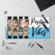 Tapis de bureau pour un ordinateur portable / ordinateur. Idée cadeau pour n'importe qui. Remplacez les 8 photos par vos photos préférées. Vibes positives. Bleu, blanc et noir avec un coeur d'amour et des rayures.