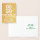 La façade de cette carte de voeux en feuille d'or avec un thème d'anniversaire énergique, accrocheur et accrocheur est marquée par le message "8 ANS !". L'intérieur comporte un message d'anniversaire personnalisable. Une carte de voeux comme celle-ci pourrait être une façon amusante de commémorer le huitième anniversaire de quelqu’un. [~Z0000400]