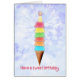 Carte de 8ème anniversaire pour quelqu'un qui aime la crème glacée. Une très belle carte d'anniversaire ! Six boules de glace aromatisée empilée sur un cône. En plus, toutes les bougies d'anniversaire brûlent joyeusement. Une façon merveilleuse d'envoyer un message d'anniversaire heureux à quelqu'un avec un doux