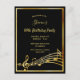Une carte d'invitation branchée et moderne pour 90ème anniversaire pour hommes et femmes. Un arrière - plan noir classique, avec cadre faux or et notes de musique, lettres dorées. Modèles pour vos informations de fête. Retour : arrière - plan blanc. Conseil : Si vous ne voulez pas qu'il ressemble à une carte postale, cliquez sur customiser, allez à l'arrière et retirez le séparateur et le timbre postal.