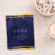 Un 90e anniversaire de fête informelle Livre d'invité pour lui, garçon, gars en bleu foncé, arrière - plan bleu marine. La couleur bleue est inégale. Avec un cadre en faux or et des confettis dorés saupoudrés, des lettres de couleur dorée. Le titre Guest Book est écrit avec un script de style moderne écrit à la main. Modèle pour un nom, âge 90, date.