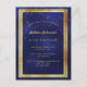 Une carte d'invitation branchée et moderne pour 90ème anniversaire pour hommes, hommes, hommes. Un arrière - plan bleu foncé, bleu marine. La couleur bleue est inégale. Avec un cadre en faux or et des confettis dorés saupoudrés, des lettres de couleur dorée. Modèles pour vos informations de fête. Retour : conception simple de carte postale.