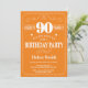 90e anniversaire Invitation Orange et Typographie blanche. Arrière - plan orange et blanc. Anniversaire adulte. Hommes ou femmes, anniversaire. Enfants Garçon ou fille Ado Anniversaire adolescente Invitation . 13e 15e 16e 18e 20e 21e 30e 40e 50e 60e 70e 80e 90e 100e. N'Importe Quel Âge.