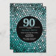 90e Invitation d'anniversaire. Parties scintillant noire et Turquoise. Diamant turquoise. Fête d'anniversaire pour adulte. Pour hommes ou femmes. Pour plus de personnalisation, cliquez sur le bouton "Customiser" et utilisez notre outil de conception pour modifier ce modèle.