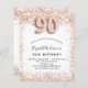 Pour un élégant 90ème anniversaire. Un arrière - plan blanc. Décoré d'or rose, confetti rose. Personnalisez et ajoutez un nom, ainsi que les détails du parti. Le nom est écrit avec un script de style écrit à la main, numéro 90 avec des polices de style ballon.