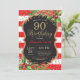 90e anniversaire Invitation pour les femmes. Invitation de la fête de Noël. Fleur de Noël. Parties scintillant noire, rouge et or. Des rayures rouges et blanches. Numérique imprimable...