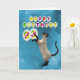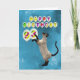 Un chat siamois ludique poursuivant des ballons. Un excellent moyen pour un amoureux des chats d'envoyer une carte d'anniversaire.