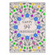 Carte 94e anniversaire. Un glorieux motif abstrait avec fleurs et diamants. Très jolie, féminine et élégante façon de dire "Joyeux anniversaire". Un design insolite qui se démarque. Envoyez vos voeux d'anniversaire de manière élégante et éloquente. Tous les diamants sur cette carte sont imprimés.