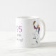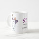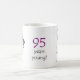 Cette tasse blanche de sonnerie, avec la lèvre et la poignée bleu-foncé fait un grand cadeau d'anniversaire pour 95 ans ! L'image, le dos et l'avant est d'une danse "d'homme plus âgé", dans un casquette de blazer et de chapeau en paille, d'une illustration pour aquarelle par Judy Adamson. Entre les deux hommes est le texte - 95 ans de jeune !