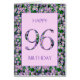 Carte 96e anniversaire pour une femme qui aime les fleurs. Une carte d'anniversaire élégante avec un arrière - plan de fleurs marguerites violettes. C'est la carte parfaite pour une fille qui aime n'importe quoi floral ou violet!