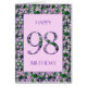 Carte 98e anniversaire pour une femme qui aime les fleurs. Une carte d'anniversaire élégante avec un arrière - plan de fleurs marguerites violettes. C'est la carte parfaite pour une fille qui aime n'importe quoi floral ou violet!