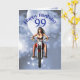 Une belle fille à moto à travers les étoiles dans le ciel. Une carte d'anniversaire très différente pour l'homme qui aime la moto !