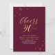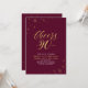 Célébrons votre jour spécial avec cette invitation élégante pour les 90 ans. Ce design présente une typographie dorée chic "À 90 ans, santé !" et des éléments dorés sur fond bordeaux. Vous pouvez personnaliser le texte et la couleur de fond. D'autres accessoires de fête assortis sont disponibles dans ma boutique BaraBomDesign.