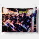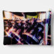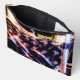 L'œuvre de ZoeSPEAK sur cette grande pochette d'accessoires est une photographie originale d'une batterie. Les tambours noirs brillants avec leurs rebords argentés reflètent les couleurs des lumières dans le studio, les bleus, les rouges et les verts. Les cymbales au-dessus des tambours attendent d'être frappées.