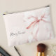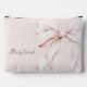 Il s'agit d'une pochette de maquillage personnalisée, élégante et élégante, avec un arrière - plan rose doux orné d'un grand et délicat ruban rose. Le design dégage un charme féminin et sophistiqué, parfait pour transporter vos produits cosmétiques et de beauté essentiels. La poche peut être customisée avec un nom, ce qui en fait un cadeau unique et réfléchi. Photo Arrière - plan par Freepik