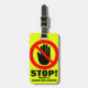 Aide à trouver et à garder d'autres hors de votre sac à bagages avec cette étiquette de bagage en vert citron vert, rouge et noir STOP! mains off symbole d'avertissement. Design Unisex idéal pour toute la famille. Lit la propriété STOP de, puis ajoutez votre nom sur l'avant et le nom complet et l'adresse à l'envers. Parfait pour les vacances à l'aéroport et les voyages en autocar. Customisez le verso de cette balise avec vos nom et adresse. Conçu exclusivement par Sarah Trett.