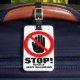 Aide à trouver et à garder d'autres hors de votre sac à bagages avec cette étiquette de bagage rouge et noir en gras STOP! désactive le symbole d'avertissement. Design Unisex idéal pour toute la famille. Lit la propriété STOP de, puis ajoutez votre nom sur l'avant et le nom complet et l'adresse à l'envers. Parfait pour les vacances à l'aéroport et les voyages en autocar. Customisez le verso de cette balise avec vos nom et adresse. Conçu exclusivement par Sarah Trett.