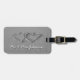 Coeurs dans le sable de plage étiquette bagages pour les nouveaux mariés. Étiquette de voyage personnalisé avec des coeurs tendus dessinés sur la côte. Romantique photo côtière en noir et blanc. Idée cadeau mariage pour marié et marié. Thème romantique pour nouveau mari et femme.