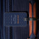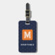 Cette étiquette de bagage est design avec motif simple et foncé bleu marine et orange. C'est un grand cadeau pour l'homme (homme d'affaires), Avec le monogramme personnalisé, nom au devant et d'autres informations, cette étiquette est un grand cadeau pour mari, petit ami, père et grand-mère, etc...